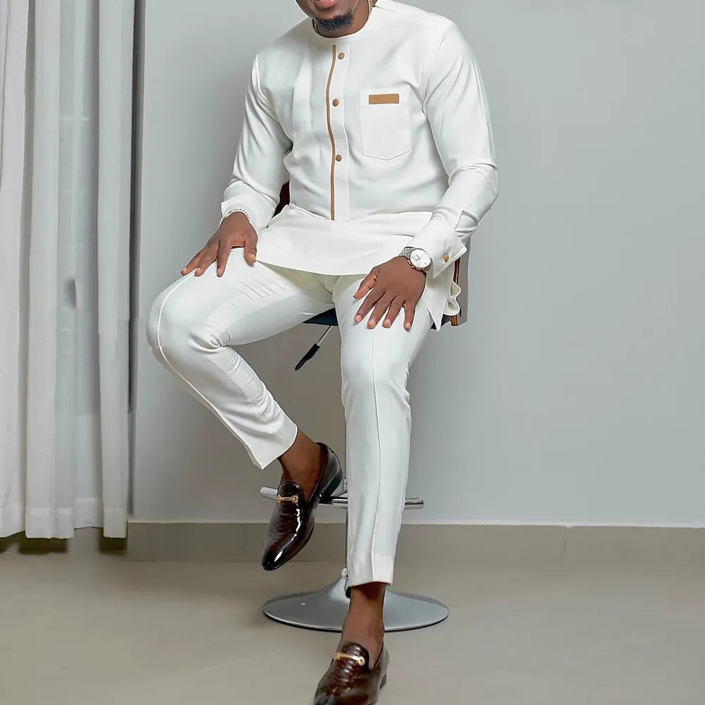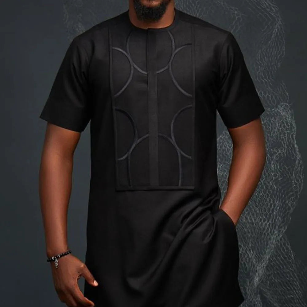 L’ensemble Tunique Africaine homme c’est la tradition qui rencontre le flair moderne. Fabriquée en coton de qualité supérieure, cette tunique est un symbole de durabilité. Un choix parfait pour la saison estivale. Avec un Col O et des manches courtes ou longues, elle se fond parfaitement dans l’ambiance décontractée de votre garde robe.